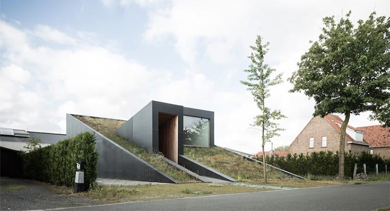 Im belgischen Maldegem steht das House pibo, das auf den ersten Blick gar nicht nach 175 Quadratmetern ausschaut. Das liegt daran, dass der Großteil der Bude unter der Erde liegt. Ein Team bestehend aus Nigel Jooren, Eddy Soete, Lies Willaert und Pieterjan Vanmaele von OYO hat das ausgetüftelte Design erstellt, das zwar mit ganz viel Schräge daher kommt, aber eben auch ungemein modern und schnittig. Und im Sommer gut kühl hält.