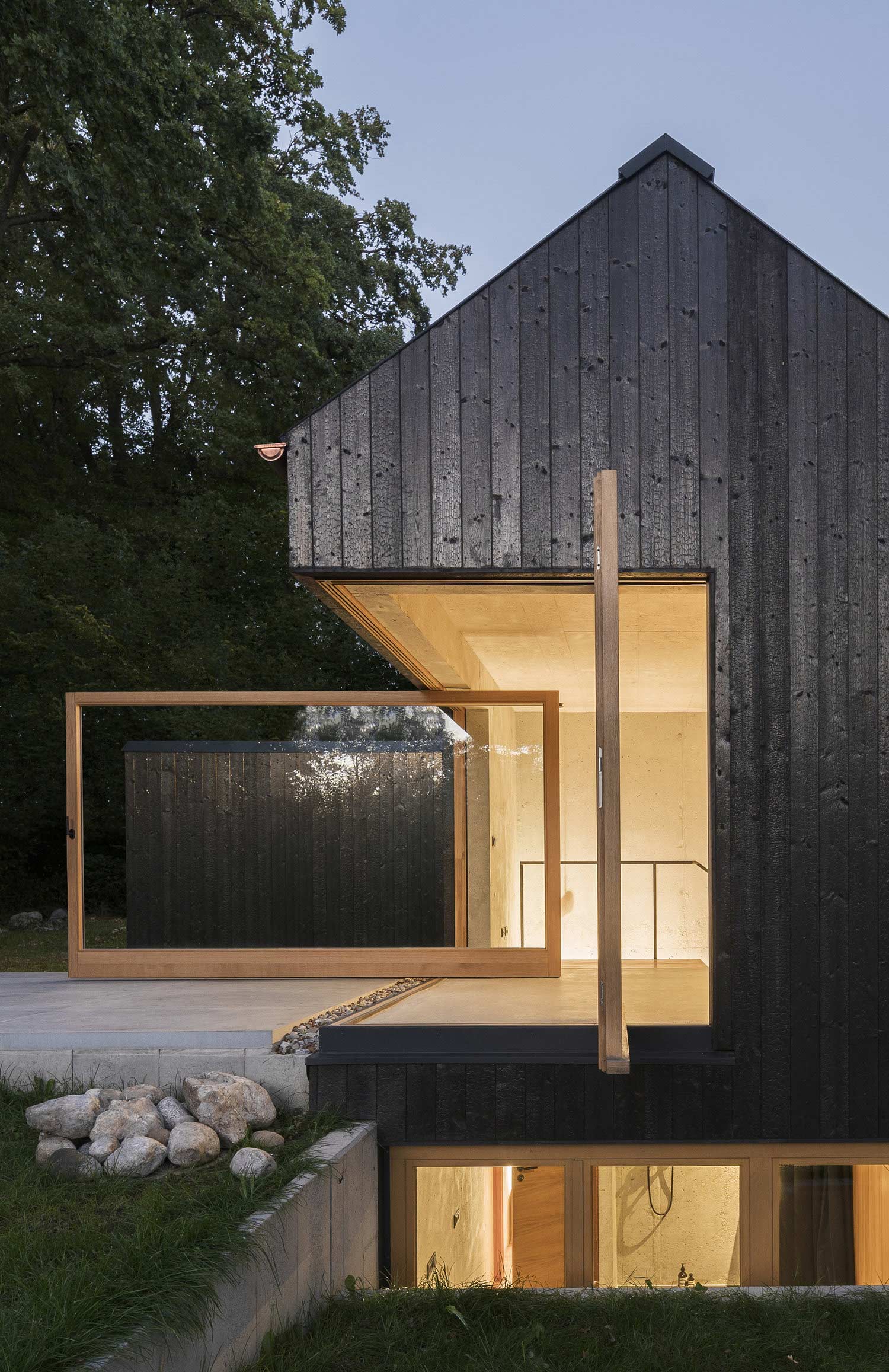 Am Ammersee hat das deutsche Architekturbüro „Buero Wagner“ diese kleine Schönheit installiert. „Das schwarze Haus“ ist Name und Programm, denn das in Holzfassade gekleidete Objekt ist komplett schwarz angepinselt. Ich bin ja allgemein ein Freund dieser Nicht-Farbe, die stets eine edle Wirkung besitzt (ich ziehe auch immer schwarze Elektronik-Artikel weißen vor). Neben der schicken Ausstrahlung nach Außen hin weiß das Haus aber auch mit modernem Innenschnitt und schön kontrastierendem Beton-Mantel zu überzeugen. Nicht umsonst wurde das 80 Quadratmeter große Projekt für den „DAM Preis für Architektur in Deutschland“ 2020 nominiert.