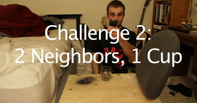 Aus der Not eine Tugend machen. Wenn das Leben dir Zitronen gibt, mach verdammt nochmal Limonade Youtuber 95Camry4Life hat nicht nur einen abgefuckten Nicknamen sondern auch Nachbarn, die gerne mal lautstark Dudelsack spielen. Da das Haus recht hellhörig ist, scheint es ziemlich zu nerven. Also macht er ein kleines Spiel daraus. Und nein, leider geht es nicht darum, Münzen per Stoß-Vibration in eine Tasse zu bekomme (wie ich erst dachte und hoffte). Nein, er muss 5 Münzen per Aufsetzer in eine Tasse befördern. Und das, bis die Luststöhner aus dem benachbarten Raum verstummen. Ein Wettlauf gegen die Manneskraft quasi.