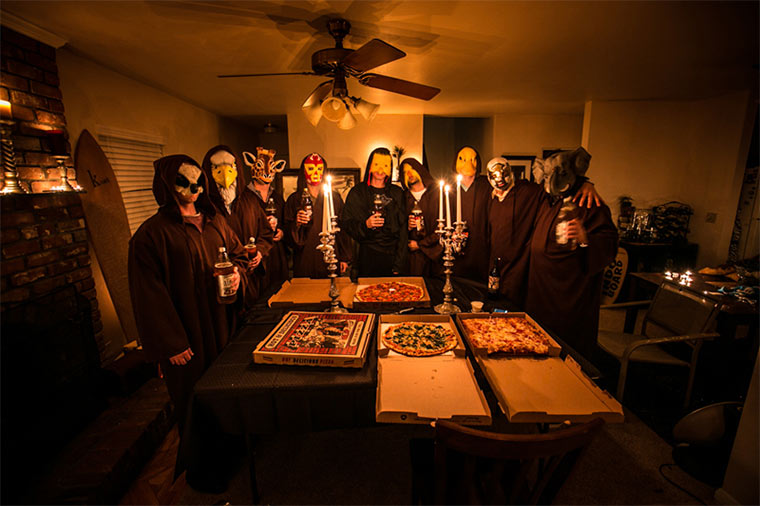 Fotograf Tim King hat im Februar seinen Geburtstag gefeiert. Mit 8 Freunden hat er eine Art Kult-Themenparty veranstaltet. Da durfte auch Pizza nicht fehlen, also haben sich die Jungs einen Spaß daraus gemacht, den Pizzaboten in entsprechender Form zu begrüßen.