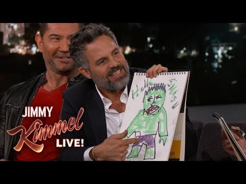 Da läuft ja gerade dieser Superhelden-Superhelden-Superhelden-Film in den Kinos, der ganz okay sein soll, entsprechend hat Late Night Show-Host Jimmy Kimmel nicht nur ein Mal das Studio voller Stars sitzen gehabt, sondern gleich zwei Runden Avengers gehabt. Dabei hat er alle DarstellerInnen darum gebeten, jeweils auf die Schnelle ein Bild der eigenen Figur zu malen. Das ist erstaunlich lustig, interessant und teils gar künstlerisch geworden, auf eine ganz eigene, abstrakte Art und Weise. Und ganz nebenbei erfährt man viel über die Schauspieler selbst, wenn sie versuchen, ihre „Kunstwerke“ vorab zu verkaufen bzw. Ausreden zu finden.