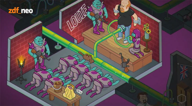 Illustrator Christoph Hoppenbrock aka der Bildbauer hat für die aktuelle Folge des Neo Magazins mit Jan Böhmermann ein episches Intro kreiert. Dabei schlüsselt Böhmermann auf, woher er seine kongeniale Komik hat und wir sehen, dass der Unterhaltungssaft allerlei nationaler und internationaler Stars in ihm vereint werden. Tolle Kreation!
