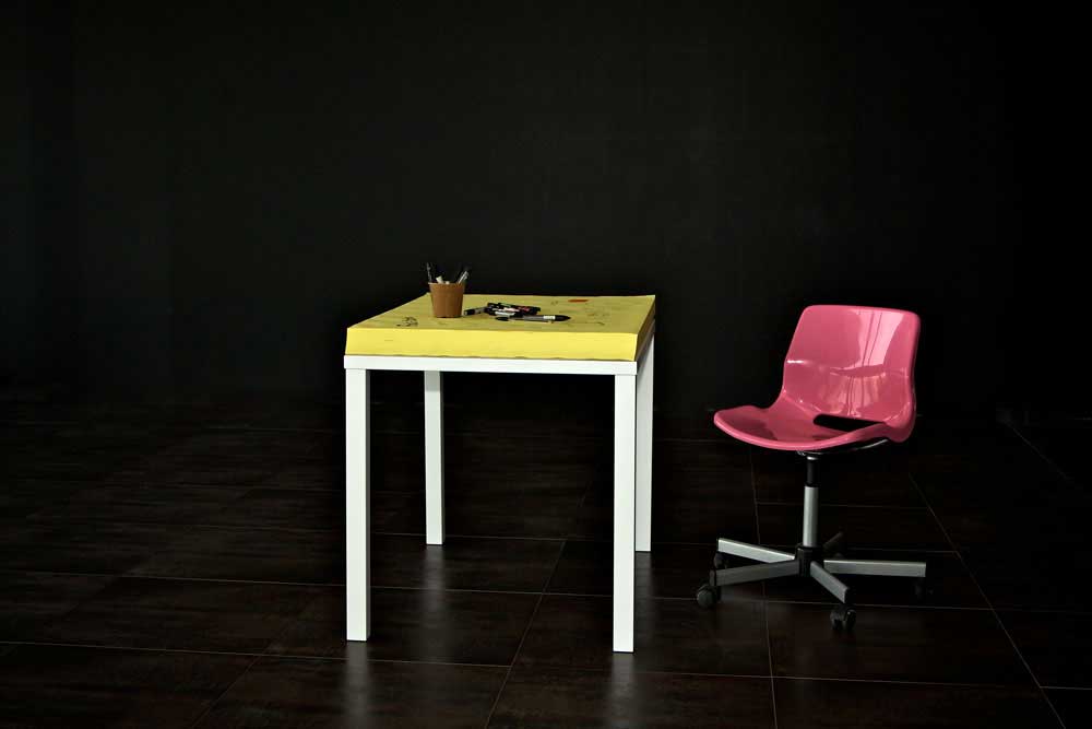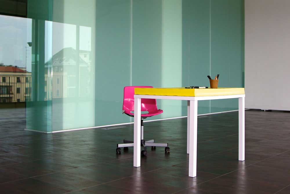 „John Forbes Nash Jr. wrote on blackboards, walls and mirrors at Princeton University for the joy of his Beautiful Mind’s discoverers. Less joyful of his genius was, without doubt, who had to clean up. How many times at the phone you had nothing to write on and you choosed your desk? How many times, bored at school, you wrote on your desk making teachers an janitors become angry? How many times you hadn’t enough space for the notes? Have you dreamt at least one time in your life to have a block notes with legs, a browsing desk or to hang up the artwork realized during latin class? Soup turned the page and created Yellow Paper on White Table.“