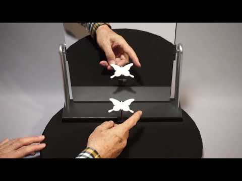 „Author description: An ordinary object facing toward a mirror, when reflected in a mirror, changes its orientation to the opposite with respect to the mirror surface. Our objects, however, just translate into the mirror without changing their orientations. This illusion is strong in the sense that the illusion does not disappear even if we change our viewpoint in a certain area.“
