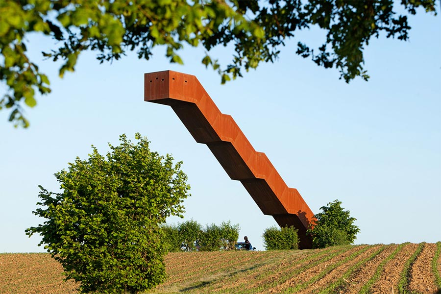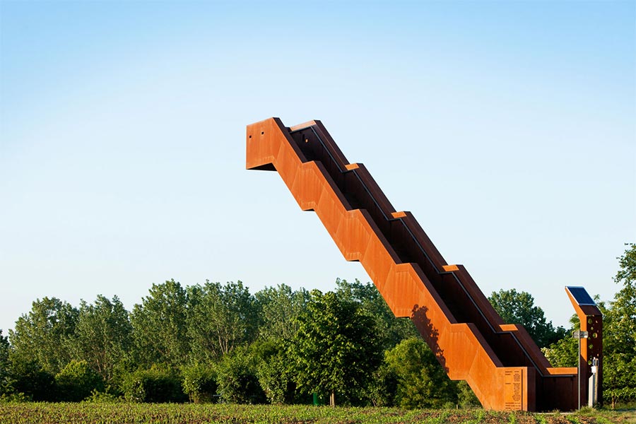 Welch tolle Kreation des belgischen Architektur-Studios Close To Bone. Der „Vlooyberg Tower“ ist eigentlich eher eine Treppe als ein Turm. Aber seine Funktion ist eben nicht die Verbindung unterschiedlicher Stockwerke, sondern eine Aussichtsplattform. Der Weg ist das Ziel und so. Wer den elfeinhalb Meter hohen „Stairway To Heaven“ mal selbst begehen möchte, muss sich nach Tielt-Winge aufmachen.