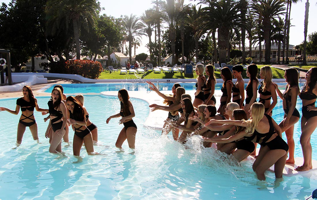 Danach ging es auch schon nach draußen – zweite Location: Pool. Verdutzte Gesichter bei verwunderten Urlaubsgästen des Hotels und den Mädchen selbst – bei Letzteren aufgrund der überraschenden Kälte des Wassers.