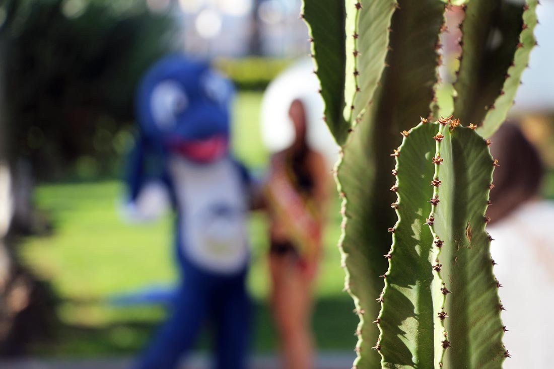 Natürlich ist der Kaktus nicht das Schärfste auf dem letzten Motiv – das ist selbstredend „Flosse“, das Maskottchen der Aldiana Hotel-Anlage hier. Aber da neben ihm eine der Kandidatinnen schon einmal mit der eigentlich erst am 20. Februar verliehenen „Miss Germany 2016“-Schärpe fotografiert wurde, durfte ich kein Foto von ihr schießen. Alle 24 werden schon einmal für PR-Zwecke mit der „Könnte ja sein“-Schärpe abgelichtet, damit schnell offizielles Material vorliegt.