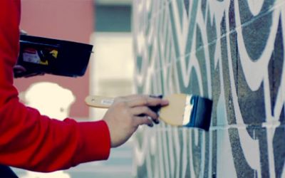 Simple Idee, gelungene Umsetzung: Das Desktop Orchestra Der Internet Veterans vereint 30 Bildschirme zum farbenfrohen Tanz.