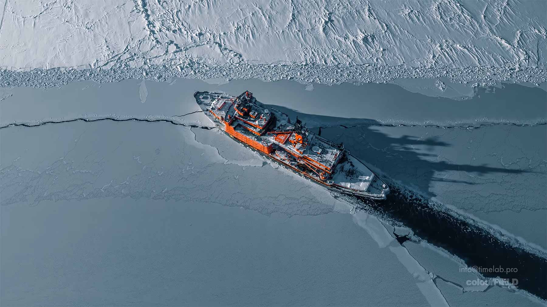 „In dem Video sind zwei russische Eisbrecher zu sehen – „50 Years of Victory“ und „Yamal“ mit einer Kapazität von 75.000 PS und einem markanten Haimund, die 1994 während eines der humanitären Kinderprogramme darauf erschienen sind. Der Legende nach schlug jemand vor, einen lächelnden Haimund auf die Nase zu ziehen, um den Kindern mehr Spaß zu machen. Gegenwärtig verfügt Russland über die einzige mit Atomkraft betriebene Eisbrecherflotte der Welt. Sie werden zur Verkabelung von Schiffen in den Gewässern der Nordseeroute in den Gefrierhäfen der Russischen Föderation, für Forschungsexpeditionen, Rettungseinsätze und für touristische Kreuzfahrten eingesetzt. Zusätzlich zu den extremen Wetterbedingungen wurde das Schießen durch die Tatsache erschwert, dass der Eisbrecher immer in Bewegung war. Und wenn der Quadrocopter DJI Inspire 2 über den Radarturm flog, war die Aufnahmedatei beschädigt.“