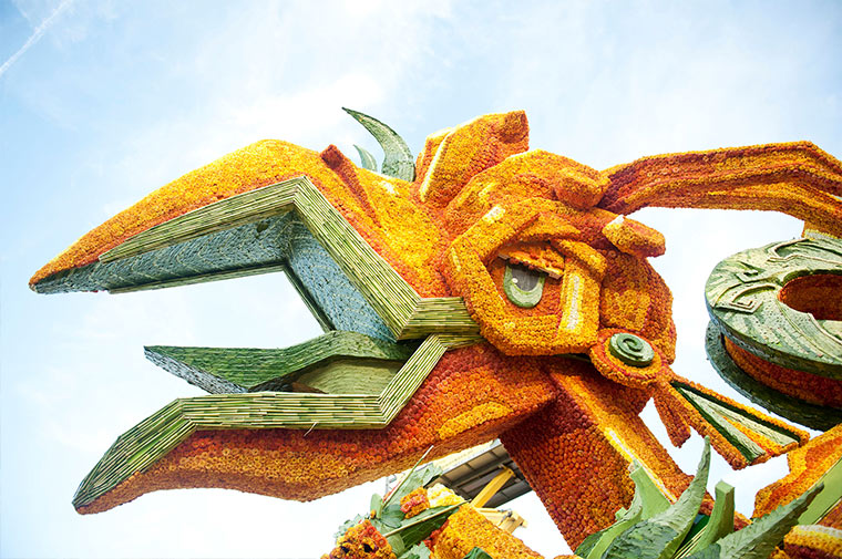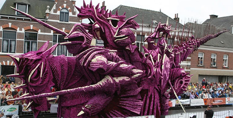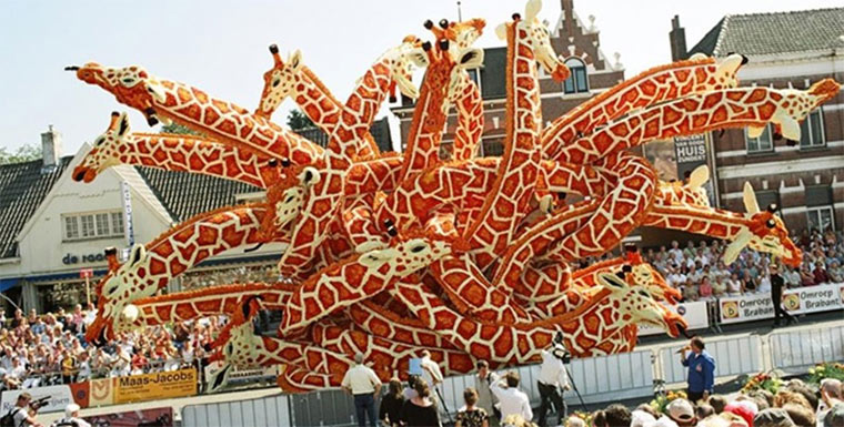 Das nenne ich mal ein Spektakel – vor allem für die Augen! Jeden September findet im südniederländischen Zundert an der belgischen Grenze der Corso Zundert statt, ein Umzug, der sich der floralen Pracht widmet und mittels Blumen und jeder Menge Kreativität ungemein beeindruckende Umzugswagen hervorbringt. Da kann unser Pappmaché-Karneval hier aber mal einpacken…