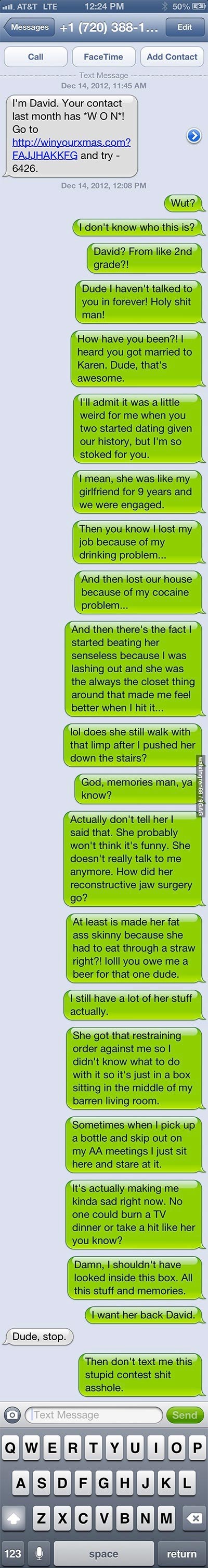 Ich persönlich erhalte zum Glück sehr wenig SMS, die nicht an mich gerichtet sind. In den Staaten ist das scheinbar etwas anders, da werden teils wahllos Spam-Nachrichten an Smartphones geschickt. Nervige Sache. Hier der wohl perfekte Weg, dass man von diesem Spammer keine Antwort mehr erhält.
