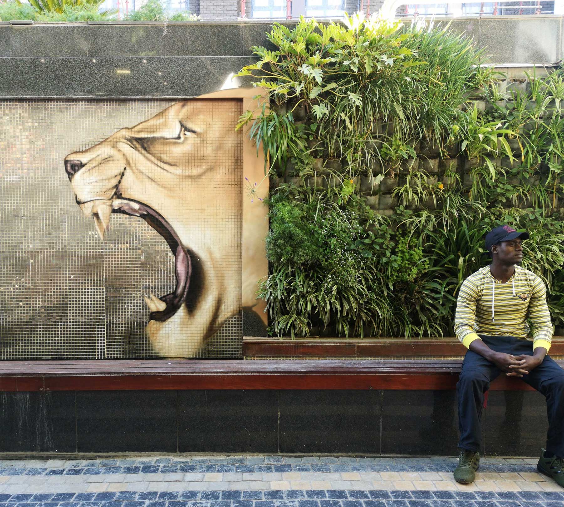 „After twenty-three years as a graffiti artist, Falko is widely regarded as an integral part of the foundation and development of South Africa’s graffiti scene. After a short stint studying graphic design, Falko decided to instead perfect the art form that kept him occupied during his years at high school. His work soon became a recognized feature around the Cape Flats, and eventually around the country.“ (Artist Statement)