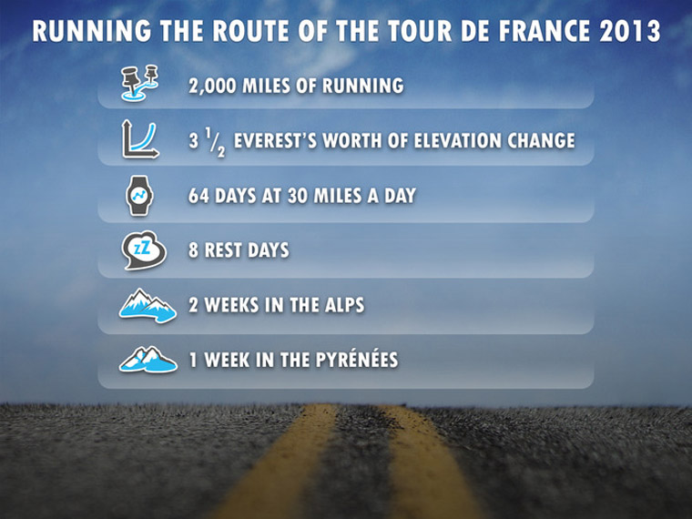 Das nenne ich ein gewaltiges Vorhaben, von dem Willy mir berichtet hat. Zoë Romano möchte die Strecke der diesjährigen Tour de France nachlaufen. Das sind mal schnell über 3.000 Kilometer. Die kann sie natürlich nicht im gleichen Tempo laufen, wie die epo-gedopten Radprofis fahren, aber in sportlichen 64 Tagen will sie das Unterfangen durchziehen. Das bedeutet ein Marathon pro Tag! Unglaublich.