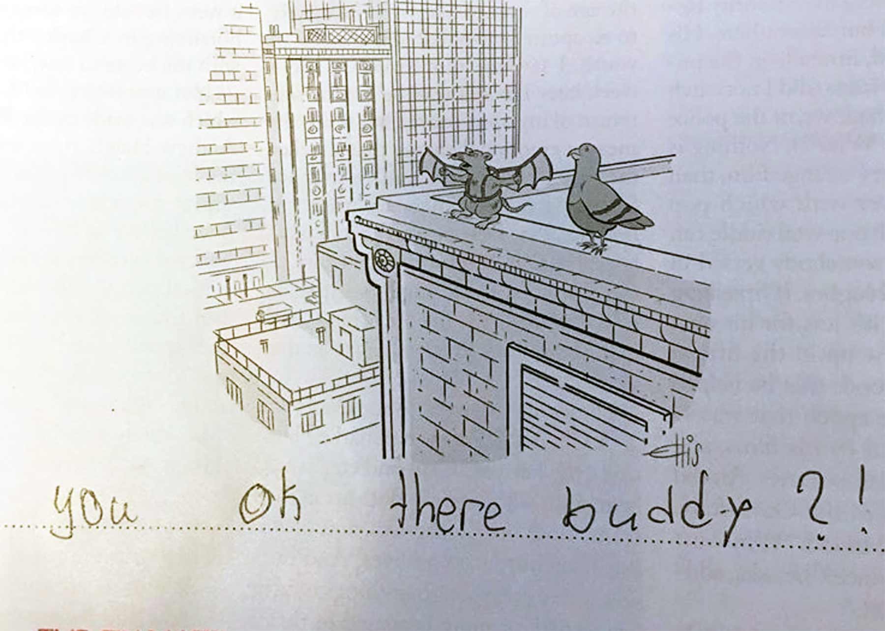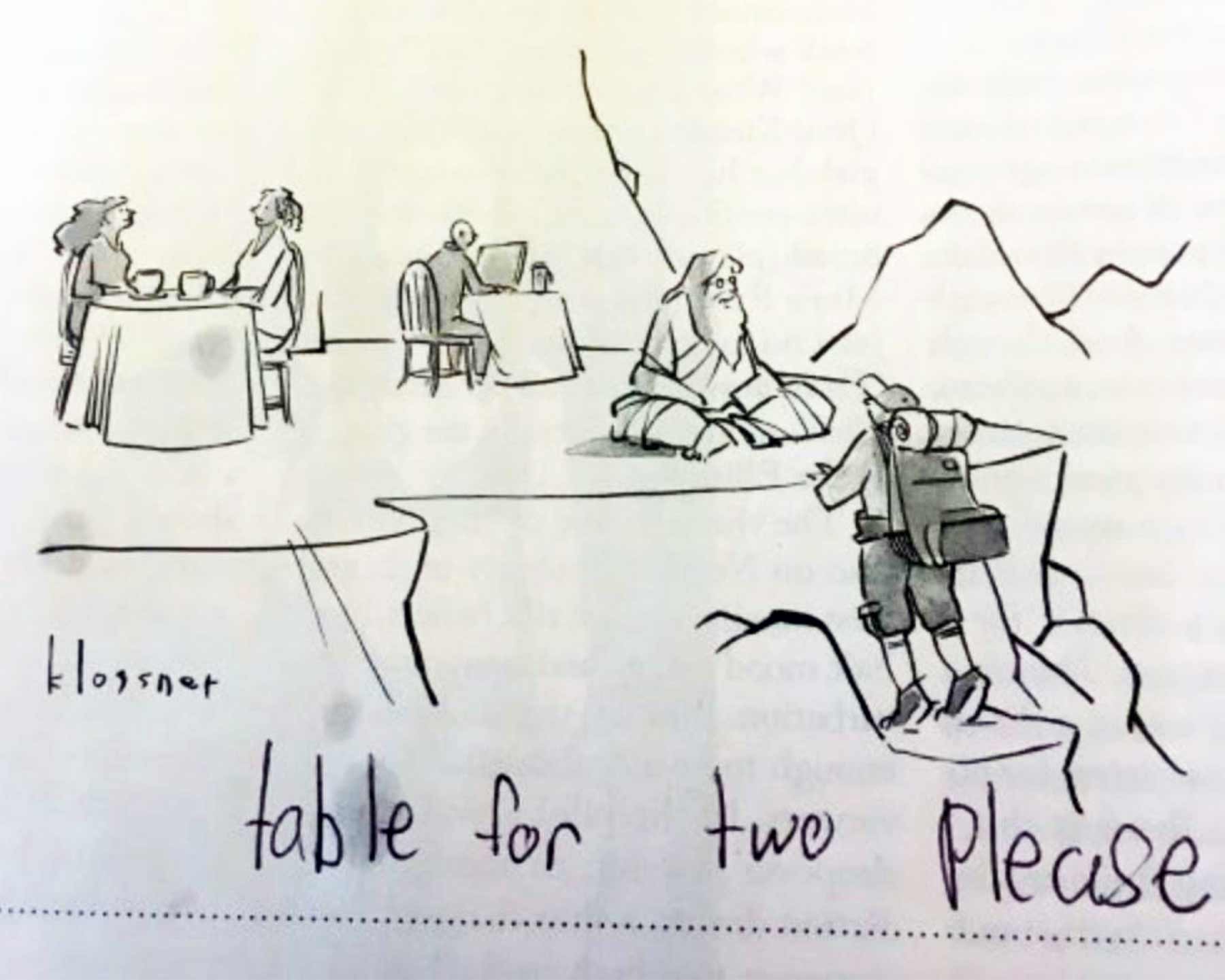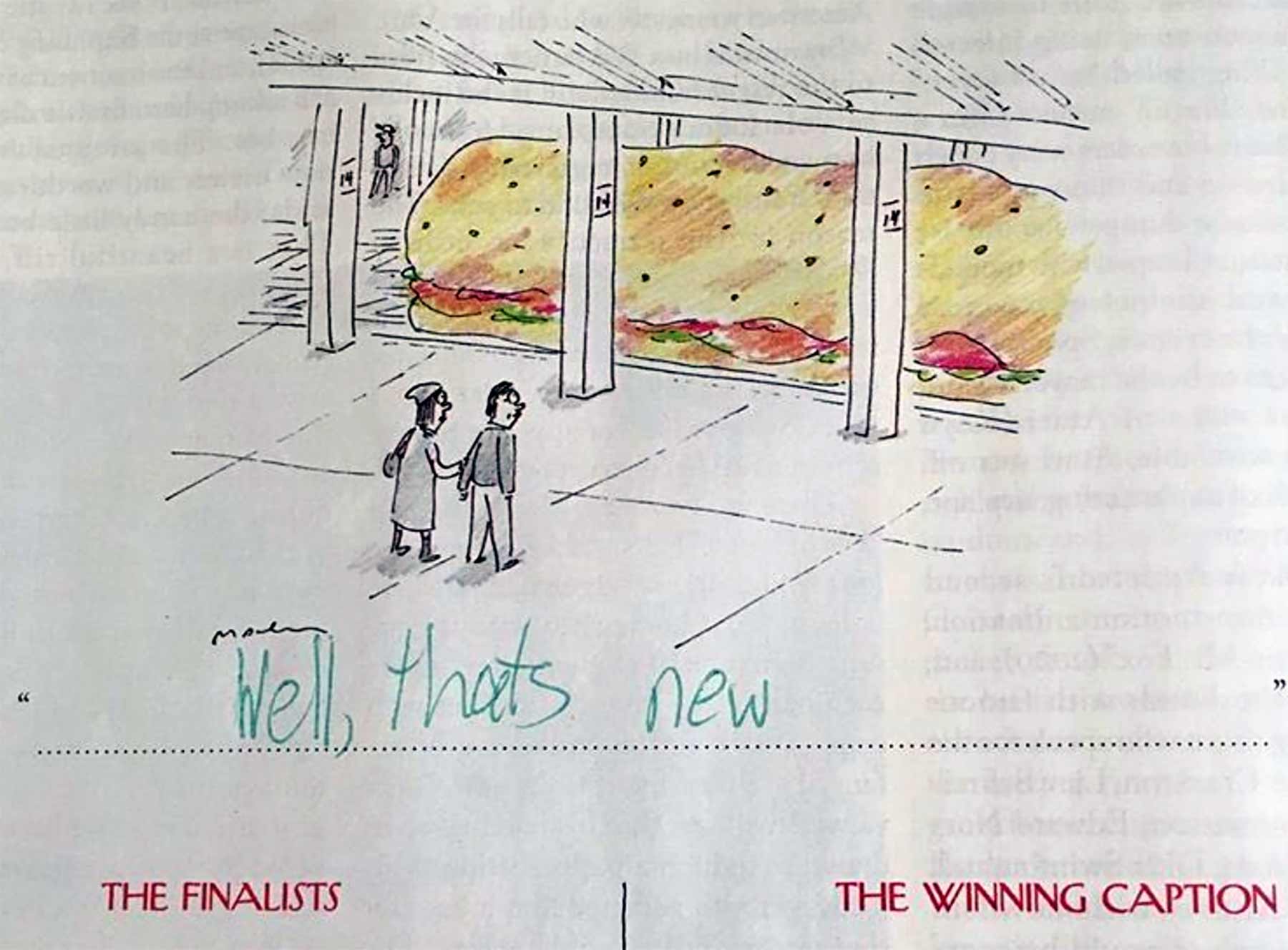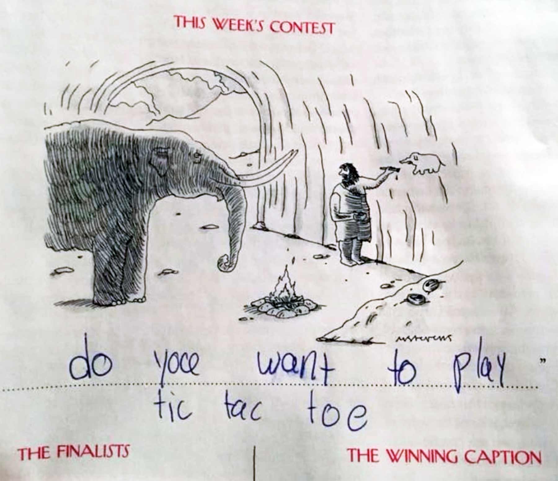 „Everything is terrible but my cousin’s 9-year old daughter Alice has been quietly and masterfully slaying the New Yorker’s caption contest and it’s pure delight. There are so many (she grabs every issue before her mom can get ahold of it) and every single one of them is perfect.“
