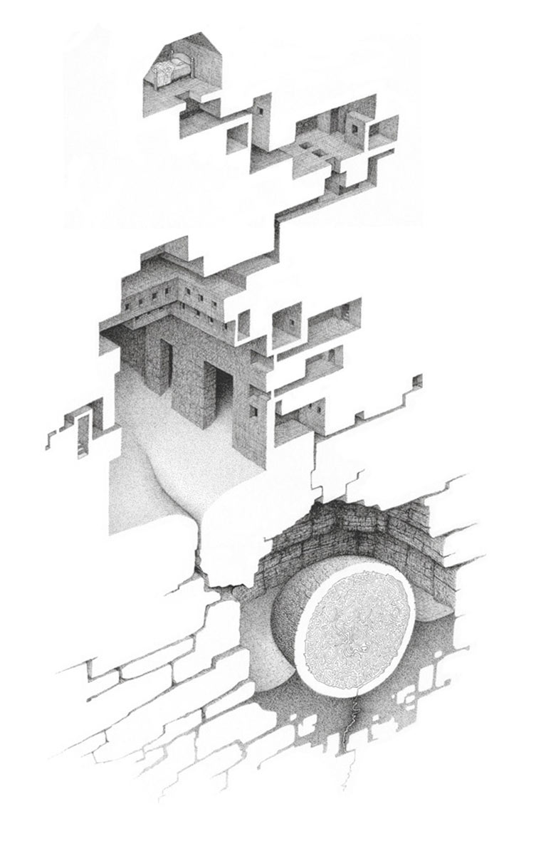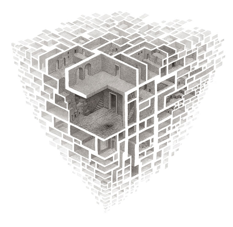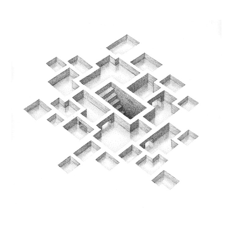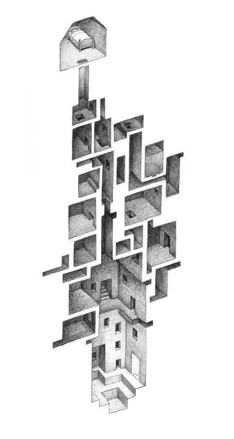 Geometrisch strukturierte Raumgeflechte präsentiert uns Mathew Borrett in seiner Room Series. Beinahe Labyrinth-artig setzen sich Räume, Gänge und Spalten zusammen. Mir gefällt dabei vor allem die Nutzung des Weißraumes auf dem Papier. Gelungene Konzeptzeichnungen des Kanadiers.