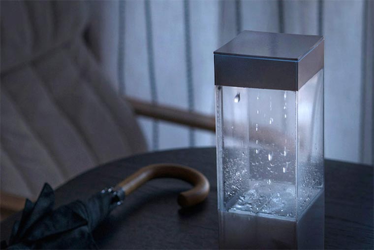 2012 hat Software-Entwickler Ken Kawamoto aus einer Shampoo-Flasche einen Wetter-Anzeiger gemacht. Mittlerweile hat er das Projekt Tempescope deutlich weiter entwickelt. Eine kleine Box stellt das für morgen angesagte Wetter tatsächlich physisch da. Soll es regnet, bilden sich Wassertropfen in der Box, wird es neblig, steigt Nebel darin auf.