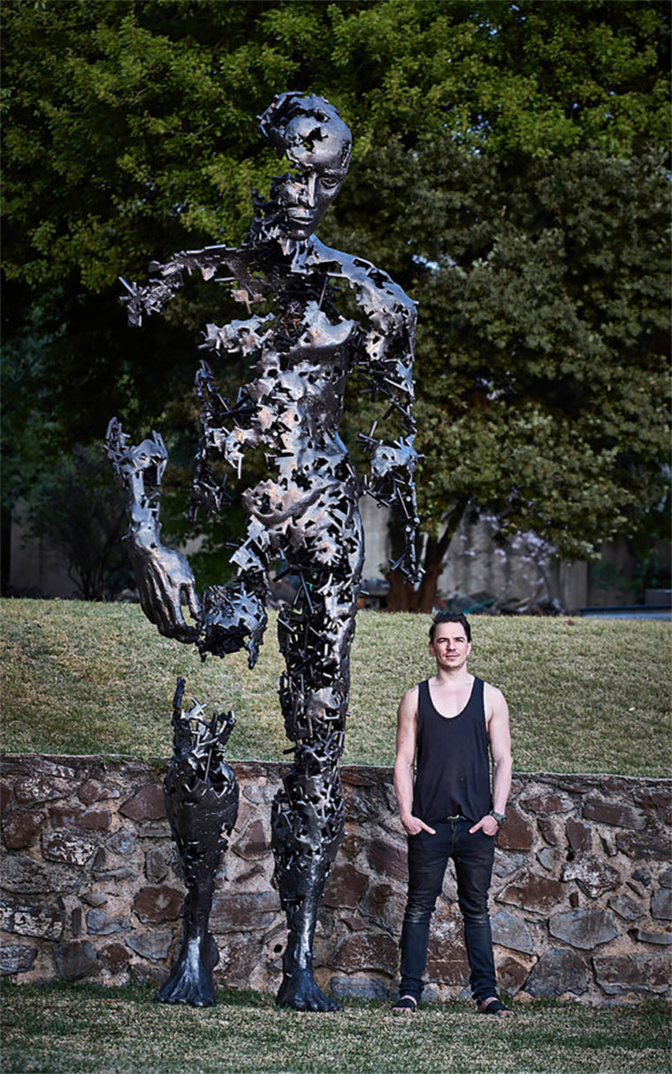 Starke Arbeiten vom Künstler Regardt van der Meulen aus Johannesburg, der Eleganze und Rudimentarität verbindet und wunderschöne Skulpturen schafft. Durch die Robustheit des Werkstoffs Metall ist es ihm möglich, Aussparungen einzuarbeiten, die durch einzelne Kontaktpunkte zusammen halten, aber eben eine äußere Zerstörung zeigen, die innere Zerstörung symbolisieren soll.