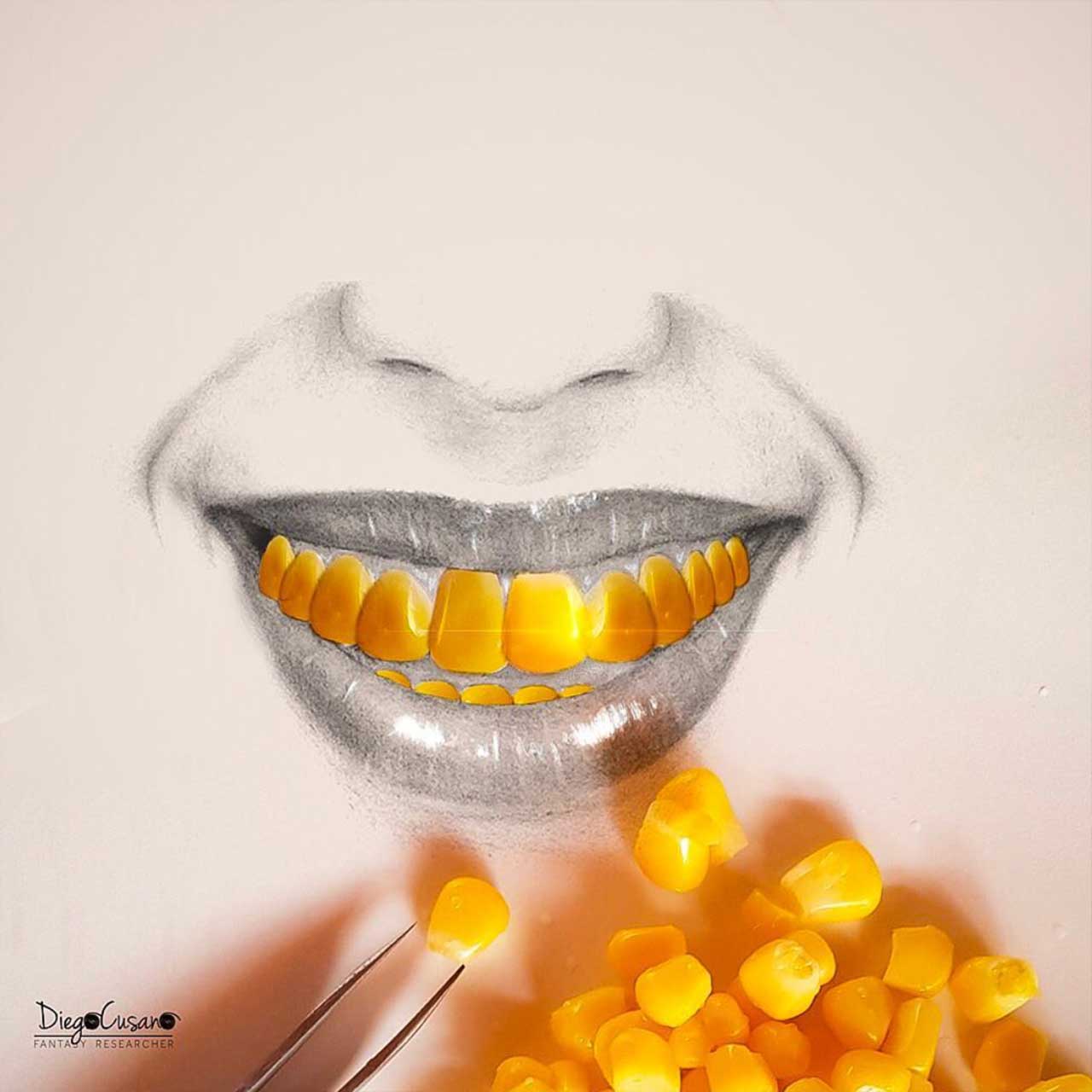 Der italienische Kreative Diego Cusano setzt seit Jahren alltägliche Gegenstände mit viel Fantasie ungewöhnlich und doch wunderbar passend in Szene. Dabei bedient er sich meist formeller Assoziationen, die vornehmlich Lebensmittel in gezeichnete Umfelder packen. Hier einige meiner persönlichen Highlights unter seinen neueren Arbeiten.