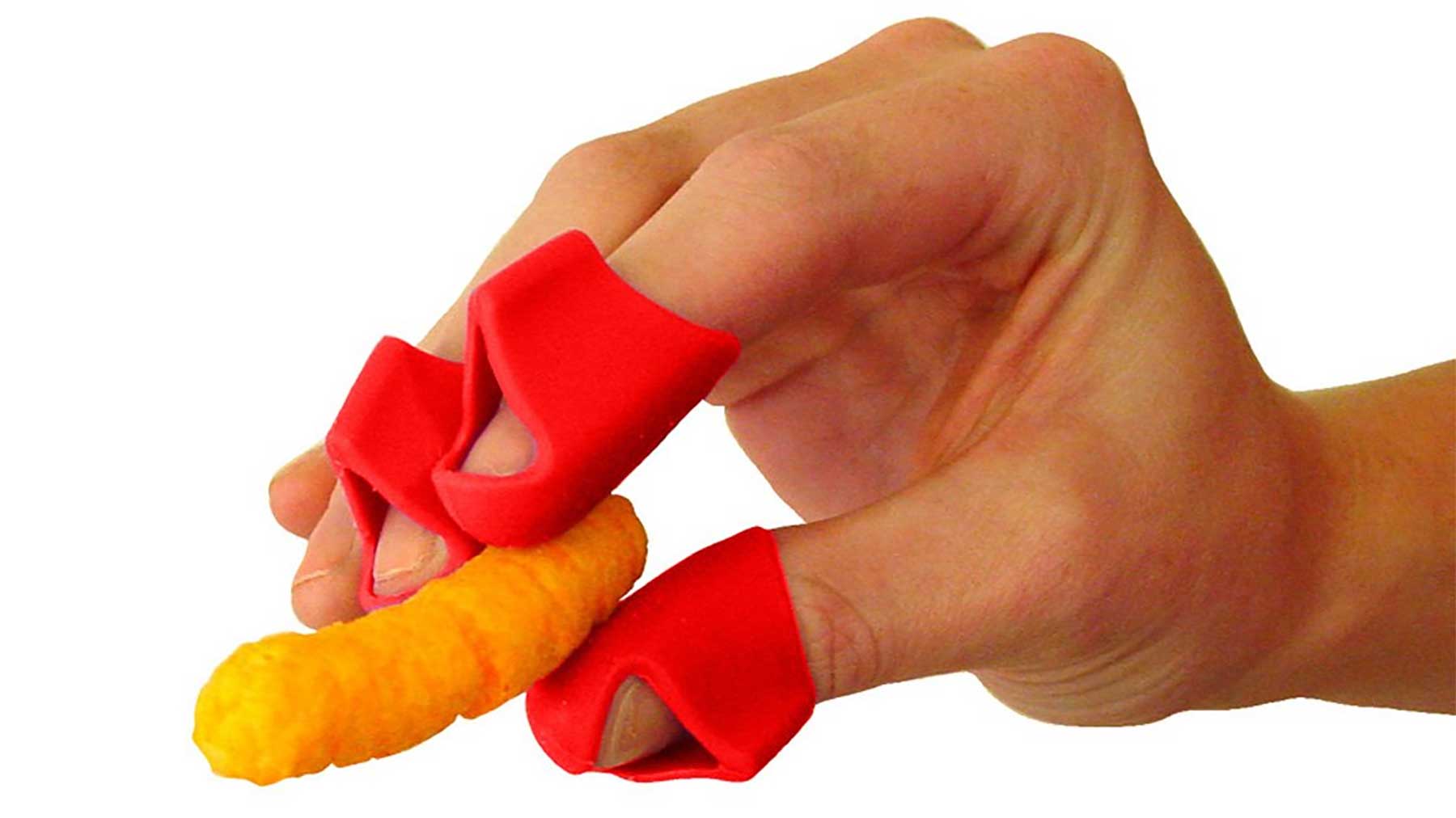 Endlich, möchte man meinen, hat das versaute Snacken ein Ende! Stenbert Solutions hat die ultimative Lösung gefunden und erfunden: die „Chip Fingers“ halten unsere Finger beim Vertilgen von Chips, Flips und was da sonst noch so zwischen die Finger kommt, sauber. Da sag nochmal einer, die Menschheit hätte sich ausgeformt und seit der Erfindung des Rads nichts mehr zu bieten gehabt!