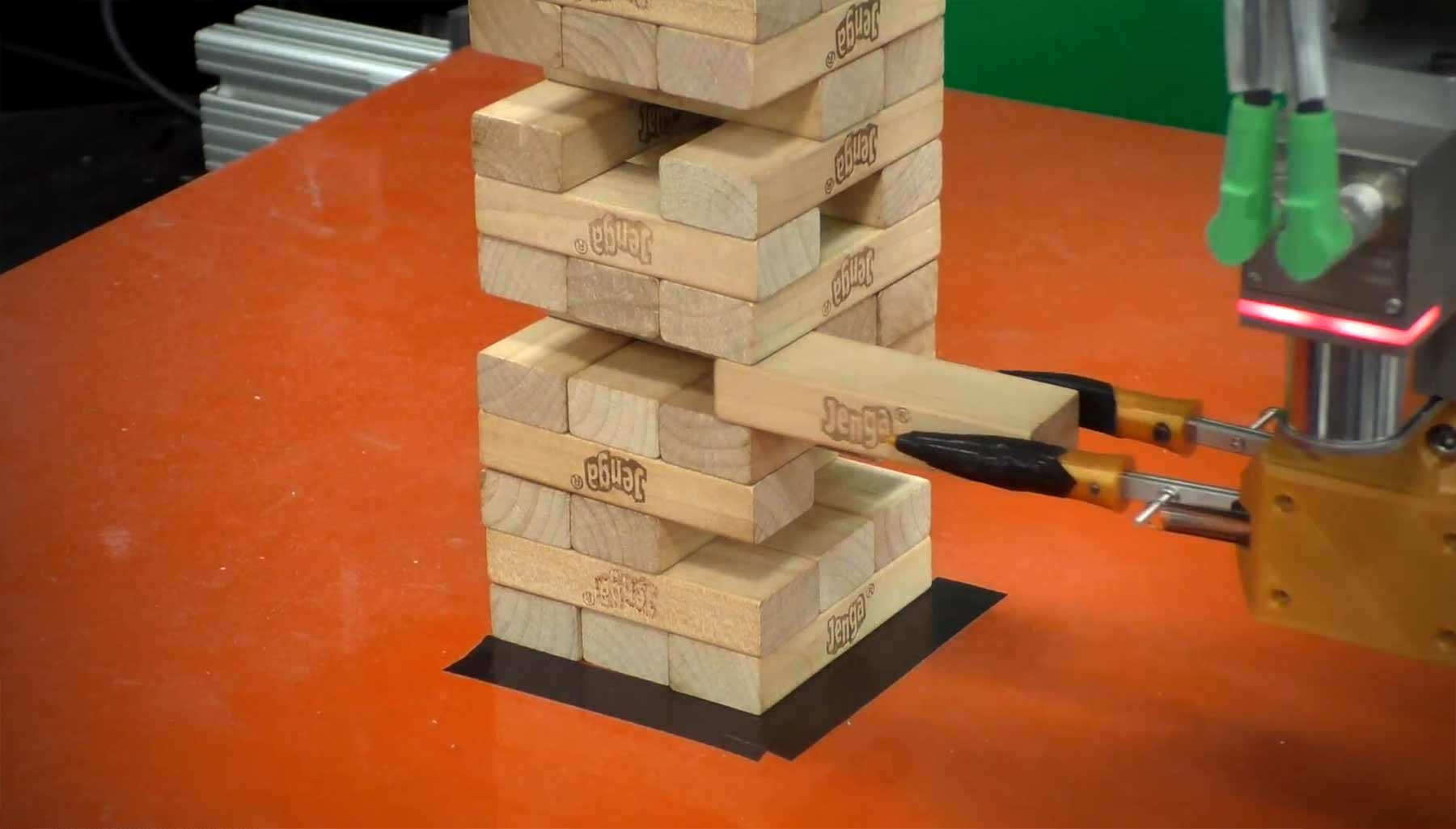 „Using machine-learning and sensory hardware, Alberto Rodriguez, assistant professor of mechanical engineering, and members of MIT’s MCube lab have developed a robot that is learning how to play the game Jenga®. The technology could be used in robots for manufacturing assembly lines.“