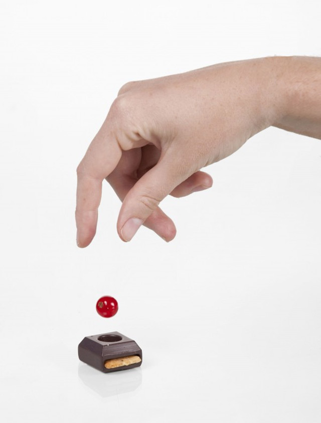 Irgendwo zwischen Kunst und Kochen bewegt sich das Projekt Sweet Play. Dabei wird quasi ein Schokoladenpralinen-Bauset zur Verfügung gestellt, damit jeder sein eigenes Wunschrezept vollenden kann. Verschiedene Schokoladensorten, Fruchtarten sowie Kekse lassen unendliche Variationen zu. Eine Diplomarbeit des französischen Designers Elsa Lambinet, die sich leider noch immer in der Konzeptphase befindet (Geldgeber willkommen).