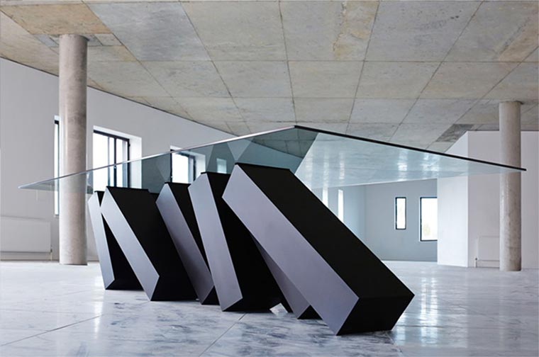 Auf den Namen Megalith Table hört diese Kreation von Designer Christopher Duffy. Ja genau, von Duffy London, die bereits bewiesen haben, geniale Tische zu designen. Vermeintlich fallende Riesen-Dominos stützen eine Glasfläche. Wunderbar minimalistisch und edel gehalten. Haben will!