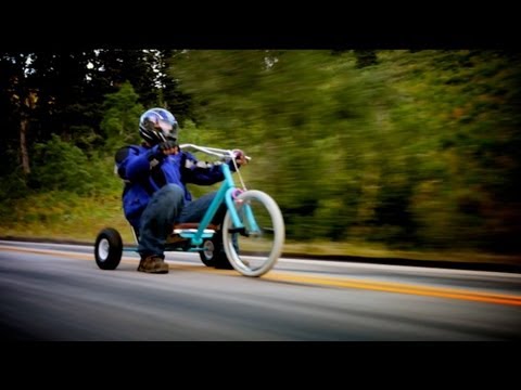 Trike Rennen mit guten 80 Stundenkilometer irgendeinen Berg hinunter. Die Schuhsohlenindustrie freut sich. Total gestört, aber eben auch fantastisch in Szene gesetzt. via