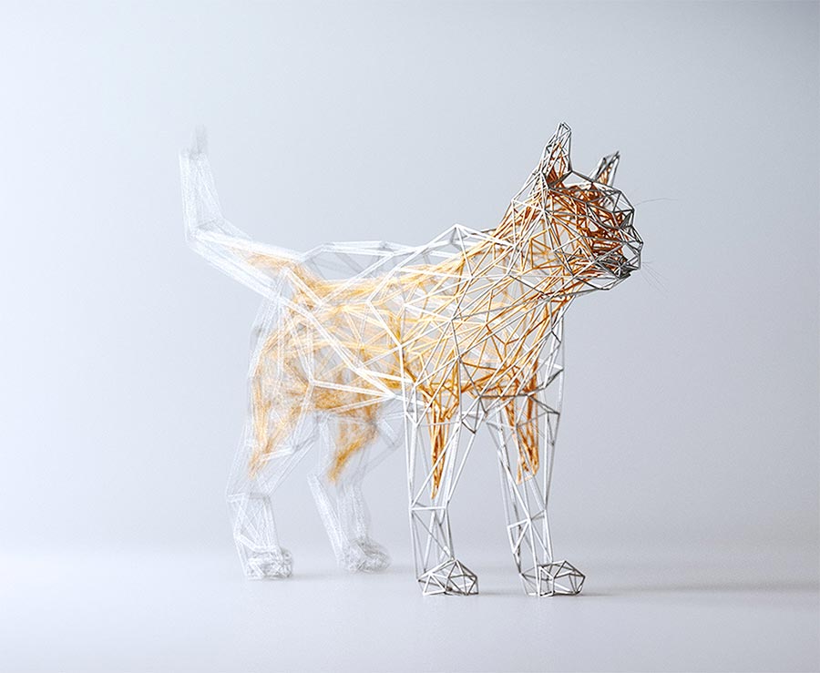 Der Name Mat Szulik könnte euch bekannt vorkommen. Anfang des Jahres hatte ich seine LowPoly World hier im Blog. Für dieses Projekt namens „WIRES“ hat er das bewegte Bild zwar durch Statik ausgetauscht, dafür bleibt aber das polygonische Erscheinungsbild erhalten. Nur eben als drahtiges Grundgerüst von Tieren in schickem Gold und Silber.