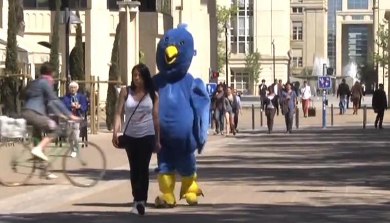 Irgendwie scheint Streichkönig Rémi Gaillard das mit dem „Folgen“ falsch verstanden zu haben. Hier folgt er jedenfalls Passanten in einem riesigen Vogelkostüm. Mehr nicht. Und doch entstehen teils wunderbare Reaktionen.