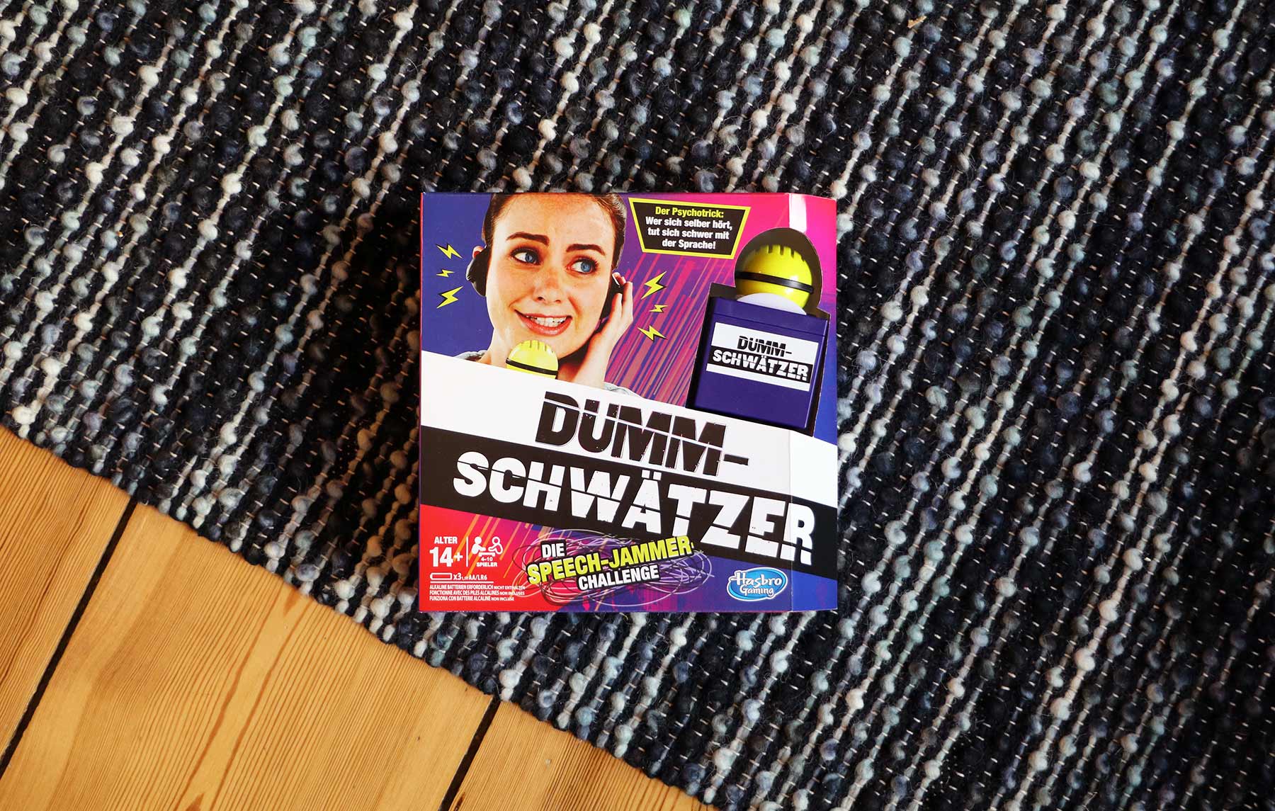Vor geraumer Zeit hatte ich mal Klass Heufer-Umlauf mit Kopfhörern erlebt, die ihn seine Worte mit einer halben Sekunde Verzögerung zu hören gaben. „Idiomat3000“ hatten die Redakteure von „Circus HalliGalli“ das Gerät getauft – jetzt kann man nicht nur diese Funktionalität selbst erleben, es wurde gar ein ganzes Spiel darum erdacht, das auch noch einen passenden Namen erhalten hat: „Dummschwätzer„. Am Wochenende habe ich das Party-Spiel von Hasbro getestet. Ob es mir die Sprache verschlagen hat? Lest selbst.