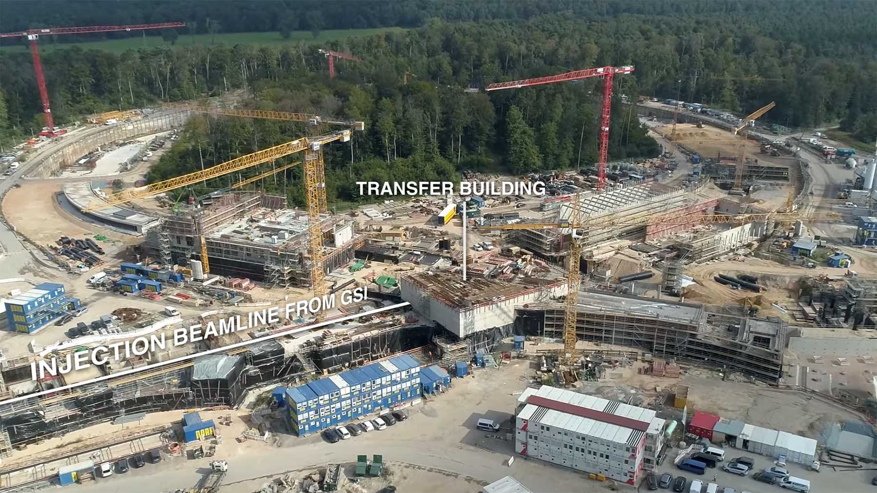 „September 2021: Das neueste Drohnenvideo von der FAIR-Baustelle. FAIR, die Facility for Antiproton and Ion Research, ist eines der größten Forschungsbauprojekte weltweit. Die Teilchenbeschleunigeranlage entsteht in Darmstadt am GSI Helmholtzzentrum.“