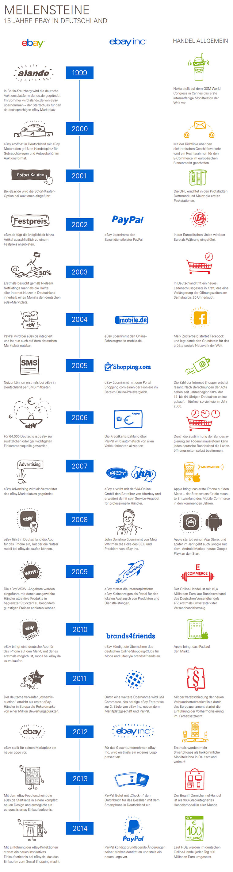 Fünf Handys pro Minute? Wenn ich überlege, wie lange ich benötige, um herumzustöbern und mich zu informieren… Zum Abschluss noch einmal ein Ritt durch die Vergangenheit. Was ist alles in den 15 Jahren von eBay Deutschland passiert? Wusstet ihr zum Beispiel, dass es „Sofort-Kaufen“ am Anfang noch gar nicht gab? Interessante Entwicklung und spannend, was in den nächsten 15 Jahren folgt.