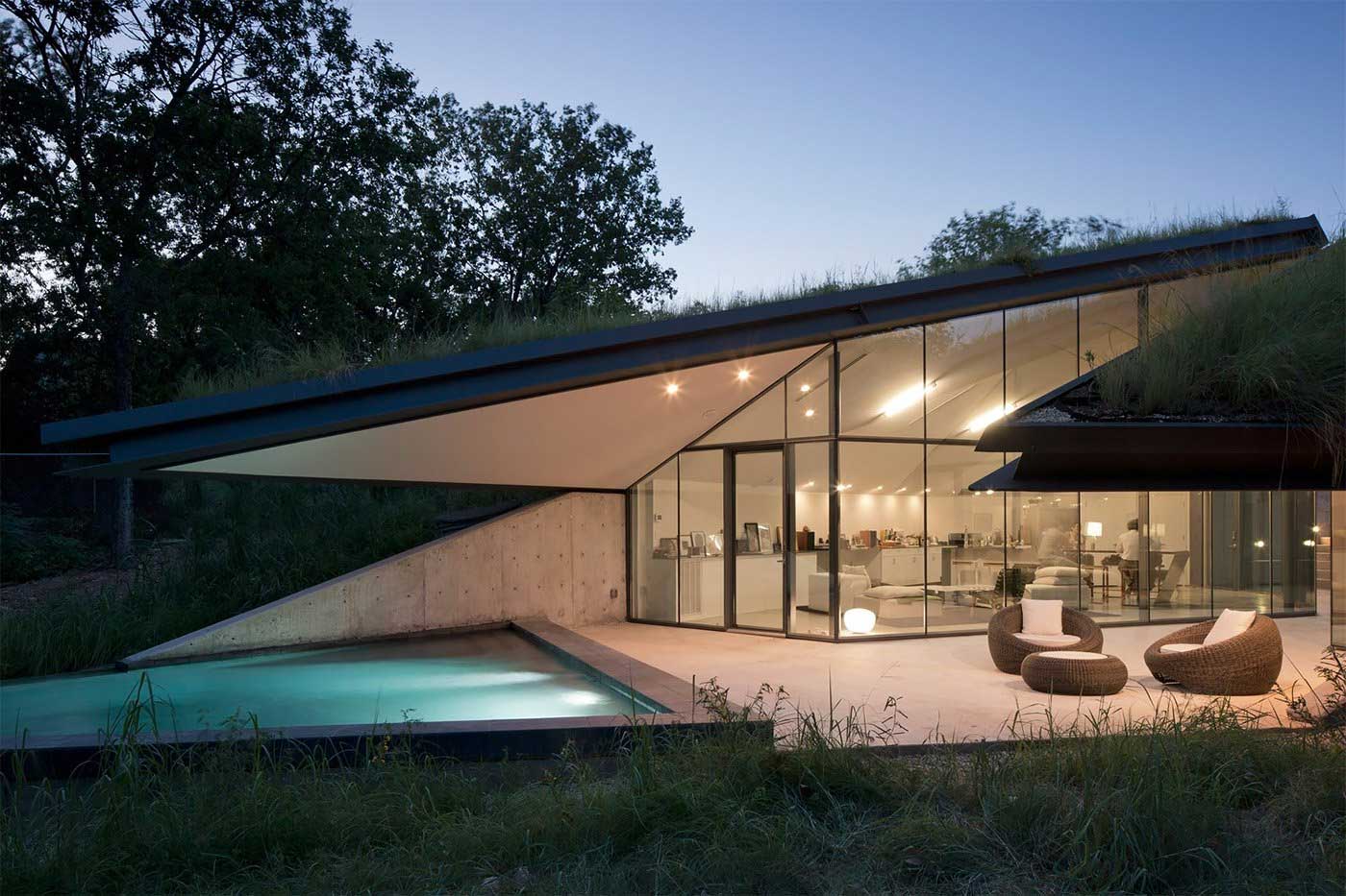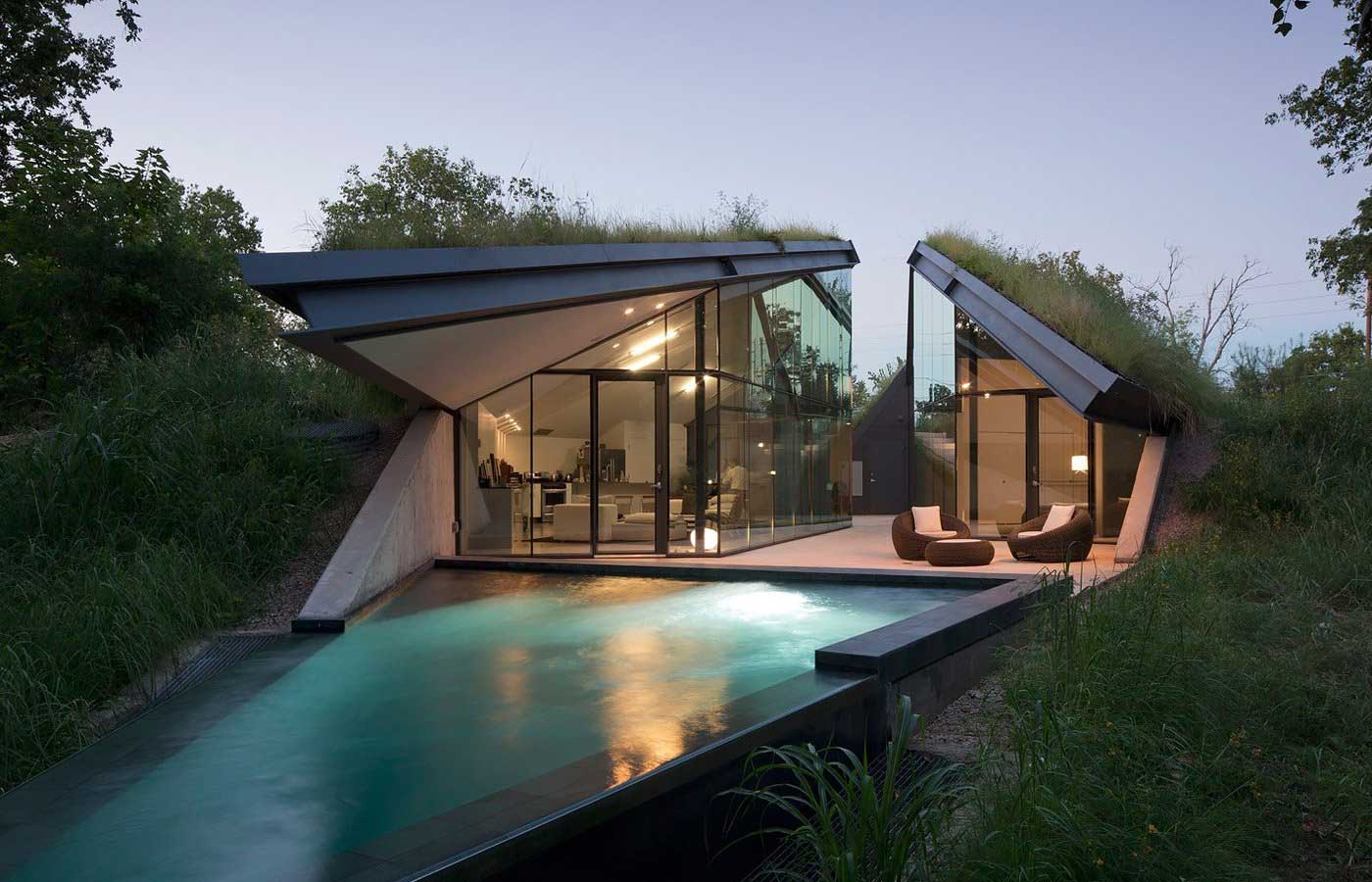 Über zwei Meter ist das in einer ehemaligen Industriebrache angelegte „Edgeland House“ in den Boden versunken. Durch die an die klassisch-nordamerikanische „Pit House“-Bauweise soll die isolierende Wirkung der Erde genutzt werden. Im Sommer schöne Keller-Kühle, im Winter ein wohlig-wärmender Erdmantel. Fernab der tiefergelegten Bauweise weiß das Erdspalten-verbaute Objekt aber vor allem auch mit dynamischen Schnitten und hochmoderner Bauweise mit viel Glas und Metall aufwarten. Gefällt mir.