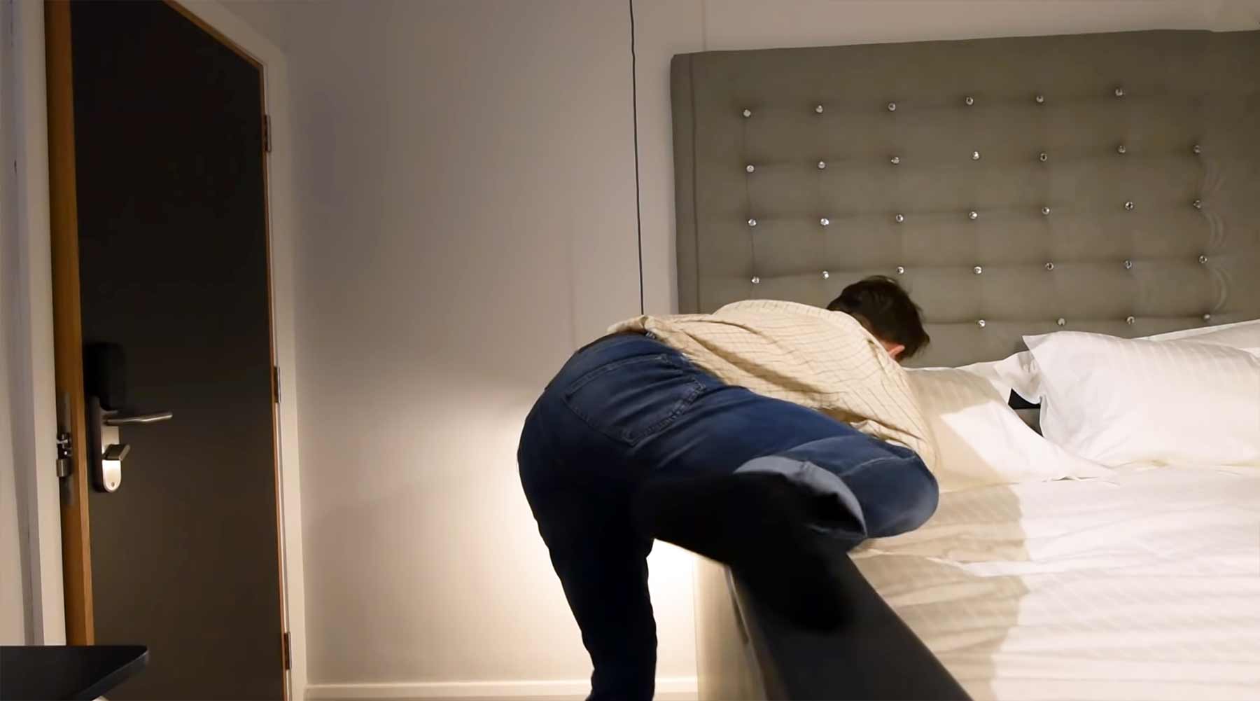 Um ein verspieltes Gespür für den problematischen Alltag von Leuten mit Behinderungen zu schüren, hat der aus Leicester stammende Künstler Christopher Samuel ein Hotelzimmer entwickelt, das auch „normale“ Leute vor allerlei Herausforderungen stellt. Oder besser: legt. Denn bereits im Bett fängt die Misere an, kommt man doch kaum heraus. Oder herein. Alles ist ungünstig angeordnet, eben, wie es sonst zum Beispiel Rollstuhlfahrende von zu hoch hängenden Lichtschaltern kennen.