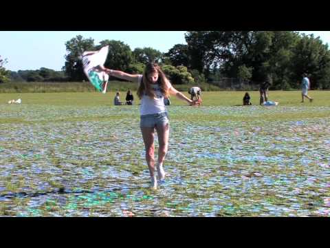 Der britische Künstler Bruce Munro hat per Radio & Co. Leute gebeten, nicht mehr gebrauchte CDs zuzuschicken und wurde mit Hunderten Silberlinge (sogar aus Brasilien und Californien) beschenkt. Am 19. und 20. Juni haben er und 140(!) Helfer dann in der Nähe von Kilmington 600.000 (!) CDs mit der Datenseite nach oben ausgelegt und so einen glitzernden Silbersee fabriziert. Dabei musste jede einzelne Disc mit einem Stein erschwert werden, um Windeinflüsse zu minimieren.