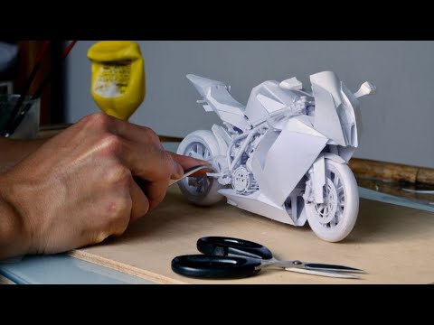 „Papercraft KTM 1190 RC8 use sketchbook. 1190 RC8 is one of the my favourite motorcycle. I tried making this bike. And tried using the material be everywhere.“