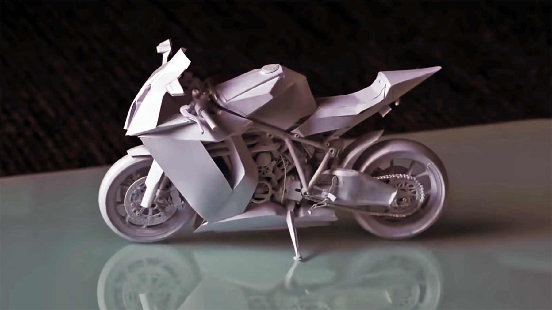 Nicht schlecht! Paper modelling hat ein Motorrad – genauer gesagt die KTM 1190 RC8 – aus Papier nachgebastelt. Und das erstaunlich detailreich! Vor allem gefällt mir aber auch, dass wir den kompletten Erstellungsprozess zu sehen bekommen, Vorab-Zeichnungen inklusive.