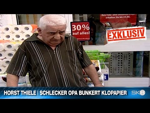 Das hier ist Horst Thiele. Seines Zeichens Rentner. In Brandenburg an der Havel ist normal nicht viel los, aber an diesem Tag brennen die Straßen. Denn Schlecker muss aufgrund minimaler finanzieller Probleme schließen und „Alles muss raus“. Auch das Klopapier und das hat sich der rüstige Rentner gesichert. Haufenweise. Gibt ja 30% drauf, dann kann man ruhig das 30-Fache kaufen. Wer weiß, wann es eine solche Gelegenheit für ein Schnäppchen nochmal gibt?