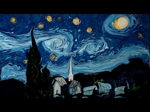 Flüssig-flüchtige Kunst von Garip Ay, der die berühmte Sternennacht Van Goghs auf eine Wasseroberfläche zaubert. Dank Marmorierungstechnik bildet sich ein wunderbar abstrakter Farbteppich, der dem Original-Duktus des Kunst-Klassikers ähnelt. Und mit einem Handschlag ist alles weg…