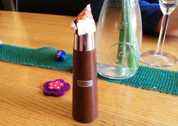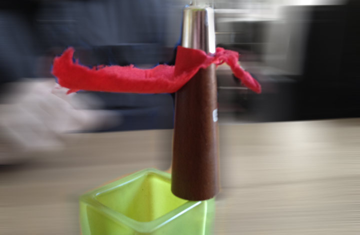 Supersalz‘ Cape weht im Café-Tisch-Wind.