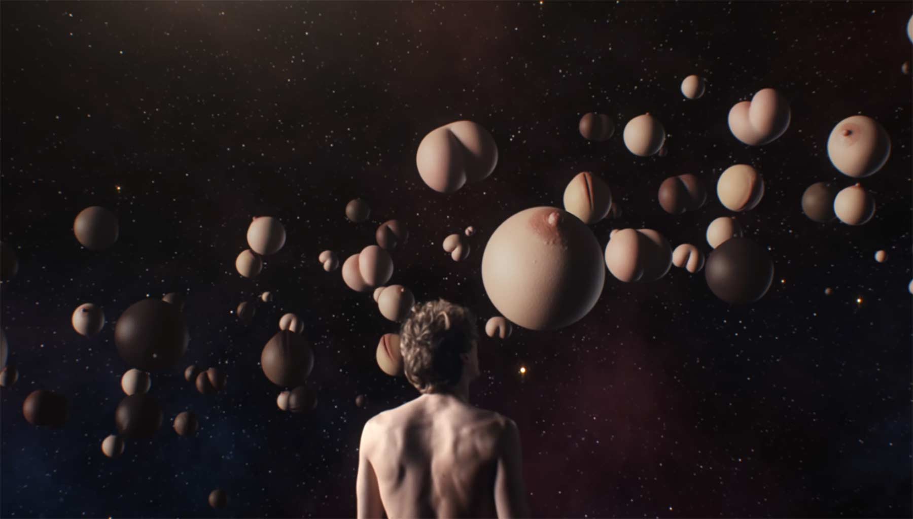 Der Preis an das abgespaceteste Musikvideo des Tages geht an Romain Laurent. Der GIF- und Filmemacher hat (wie z.B. 2014 mit dem Riesenkopf in Powers) mal wieder einen wunderbar ausgefallenen visuellen Trip für uns. Der führt uns für den Track „Burning Star“ von Their Names inmitten eines Meteoritenschauers, der aus lauter Brüsten und Hintern besteht. Ob das nun NSFW ist, muss jeder für sich und seinen Arbeitgeber entscheiden. Es könnten ja theoretisch auch männliche Brustwarzen sein. Just saying, solltet ihr in Argumentationsengen gelangen…