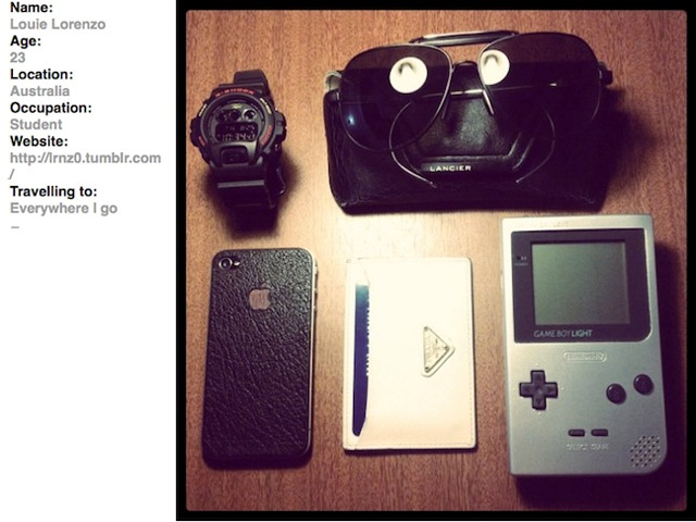 Das Projekt I Am Packed reiht sich nahtlos in die Privateinblicke in den Dingen von Leuten ein (zuvor: Taschen, Kühlschränke, Was mitnehmen, wenn’s brennt?). Hier geht es nun also darum, was man auf Reisen mitnimmt. Dabei variieren die Inhalte natürlich je nach Reiseziel und Dauer. Mich würden hier allerdings auch die Personen dahinter interessieren, also wie sie aussehen und was sie machen. Dennoch erneut eine schöne Idee und Reihe.