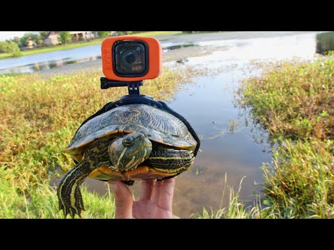 „In this video I strap a GoPro to a red eared slider turtle and then he walks up the bank and eats fish from my hand. Hope y’all enjoyed this different perspective from the turtles point of view!“
