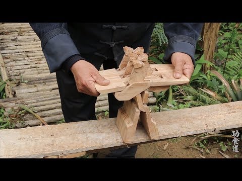 Das ist schon ein eindrucksvolles Stück Handwerkskunst, die uns 功食道 hier anfertigt. Die Betonung liegt auf „ein Stück“, denn tatsächlich ist der funktionale Klapp-Hocker nicht nur aus einem Stück Holz gefertigt, sondern auch derart smart gefertigt, dass die Segmente noch immer in gewisser Weise zusammenhängen. Handwerk at it’s best!
