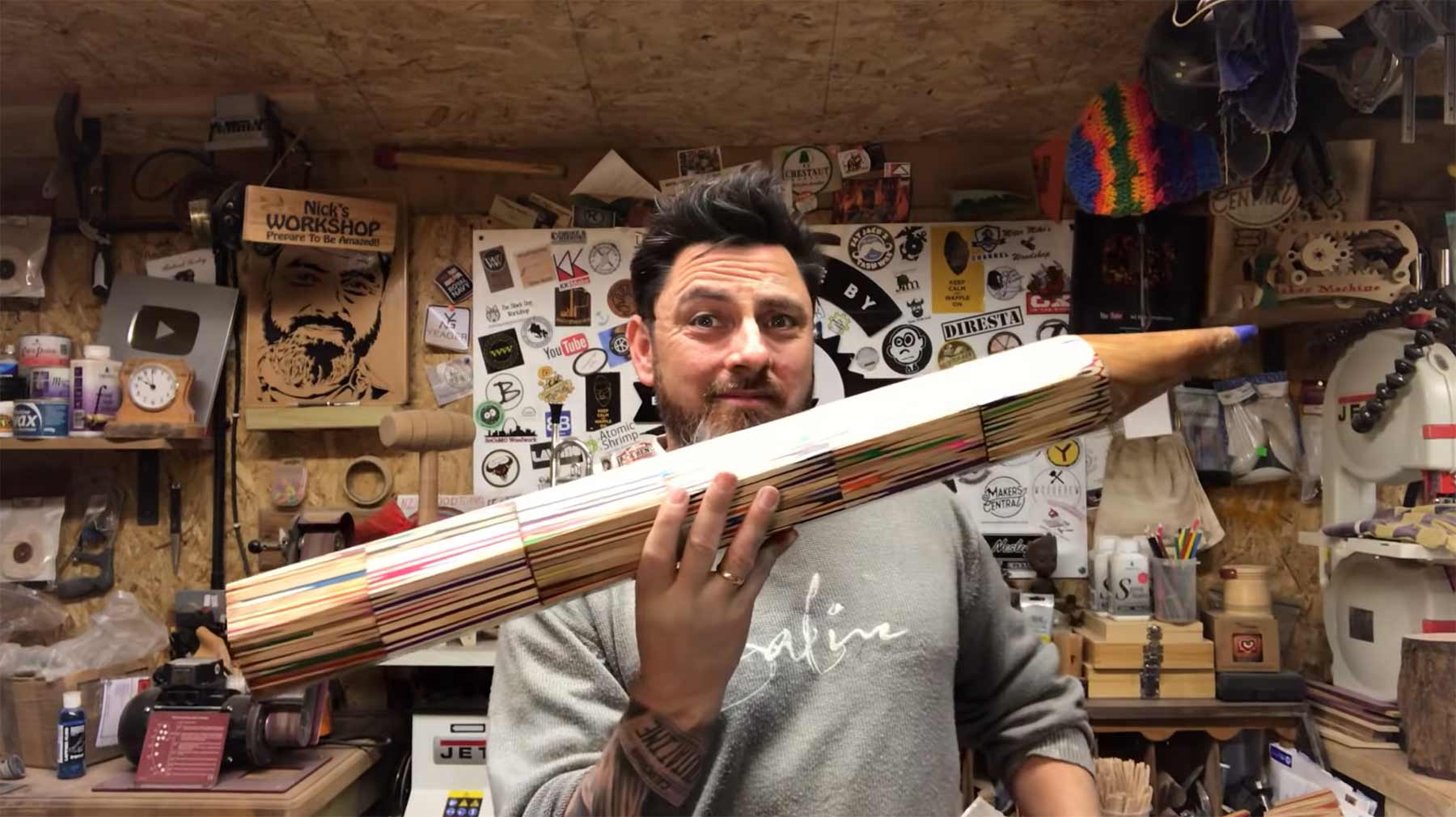 Handwerks-YouTuber Nick Zammeti hat das gemacht, was in der Überschrift steht und den Arbeitsprozess filmisch begleitet. Und auch wenn er ein bisschen getrickst hat hier und da, kann man doch festhalten, dass das Ergebnis verdammt cool geworden ist – und sogar funktioniert! Fehlt nur noch der gigantische Anspitzer…