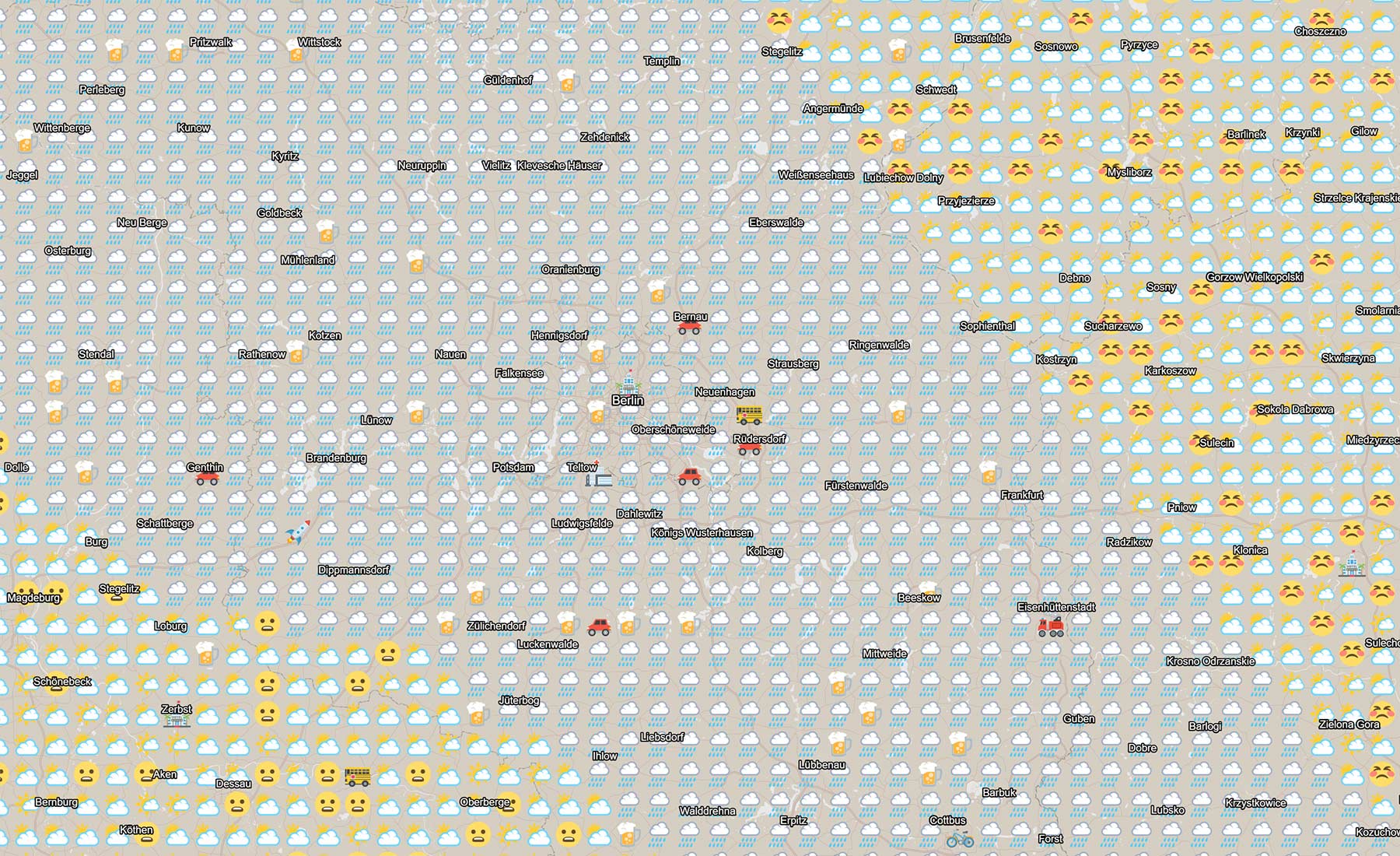 Vor allem gefallen mir ja die Fische und Autos, die zwischendrin im Meer und auf Land eingebunden wurden. Das Ganze ist übrigens inklusive Vorhersage-Funktion. Hier zum Beispiel das für morgen angesagte Wetter in und um Berlin herum: