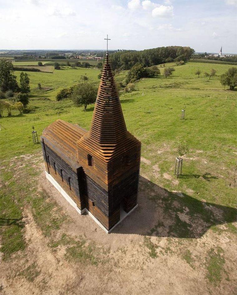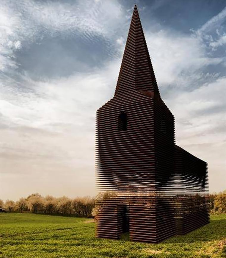 Dieses Projekt mit Name Reading Between the Lines stammt von der belgischen Architektur-Gruppe Gijs Van Vaerenbergh und besteht aus 100 Lagen „Luftsteine“ (aus Stahl, somit mit rund 30 Tonnen Gewicht alles andere als „luftig“). Je nach Standpunkt und Perspektive verändert sich so das Gebäude und lässt durchsichtige Teile beinahe unsichtbar erscheinen. Man könnte auch von „Luftnummer Religion“ sprechen, aber damit würde ich wohl zu vielen an den Kopf stoßen…