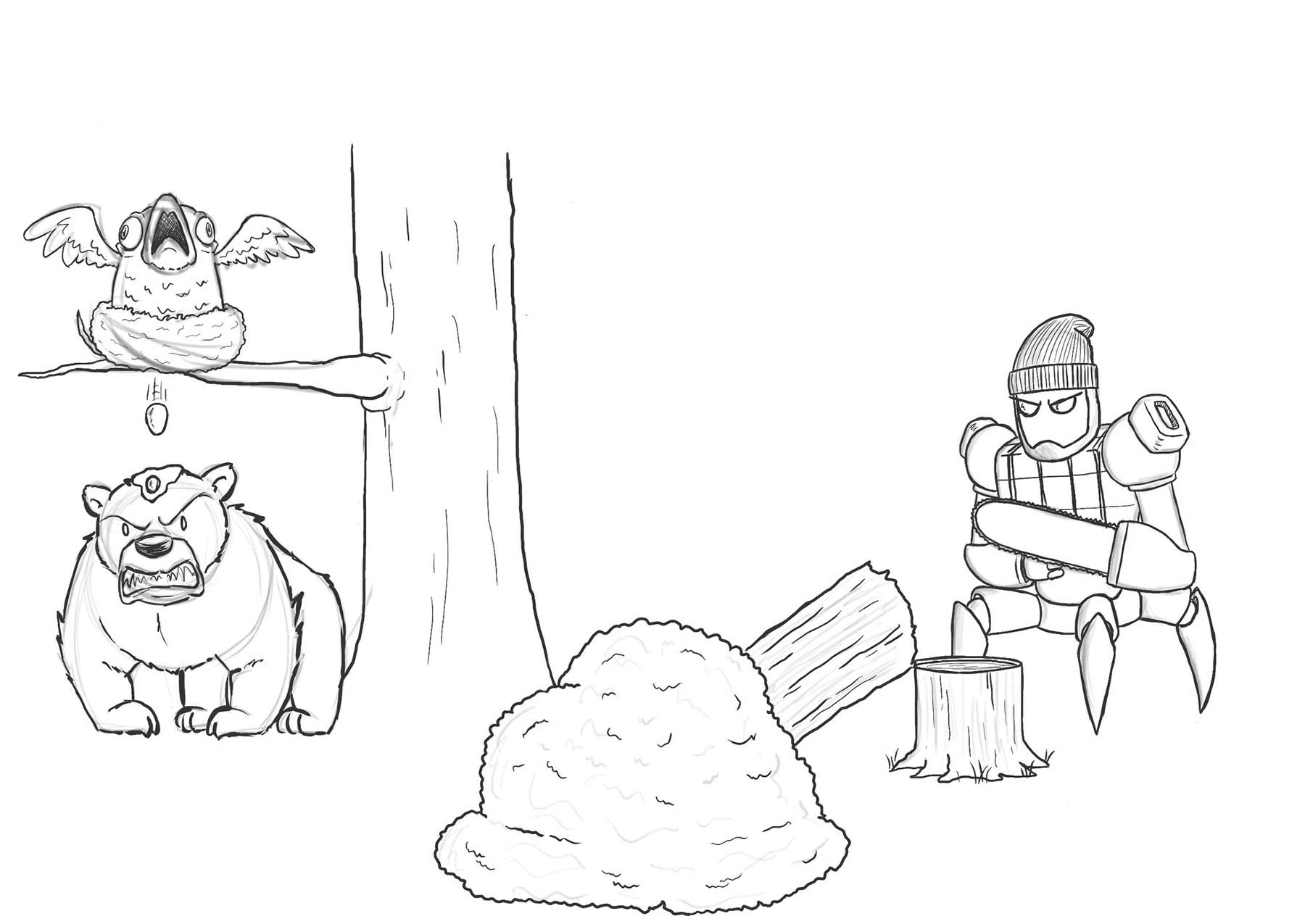 Keledjian hat sich jedoch ein einigermaßen überschaubares Ende gesetzt: 19 Tage und somit auch Motive und Figuren soll sein Motiv am Ende haben. Alles beginnt mit einem Bären, interessant finde ich, welch unterschiedliche Wege er findet, die neu hinzukommenden Charaktere möglichst originell und passend einzubinden.