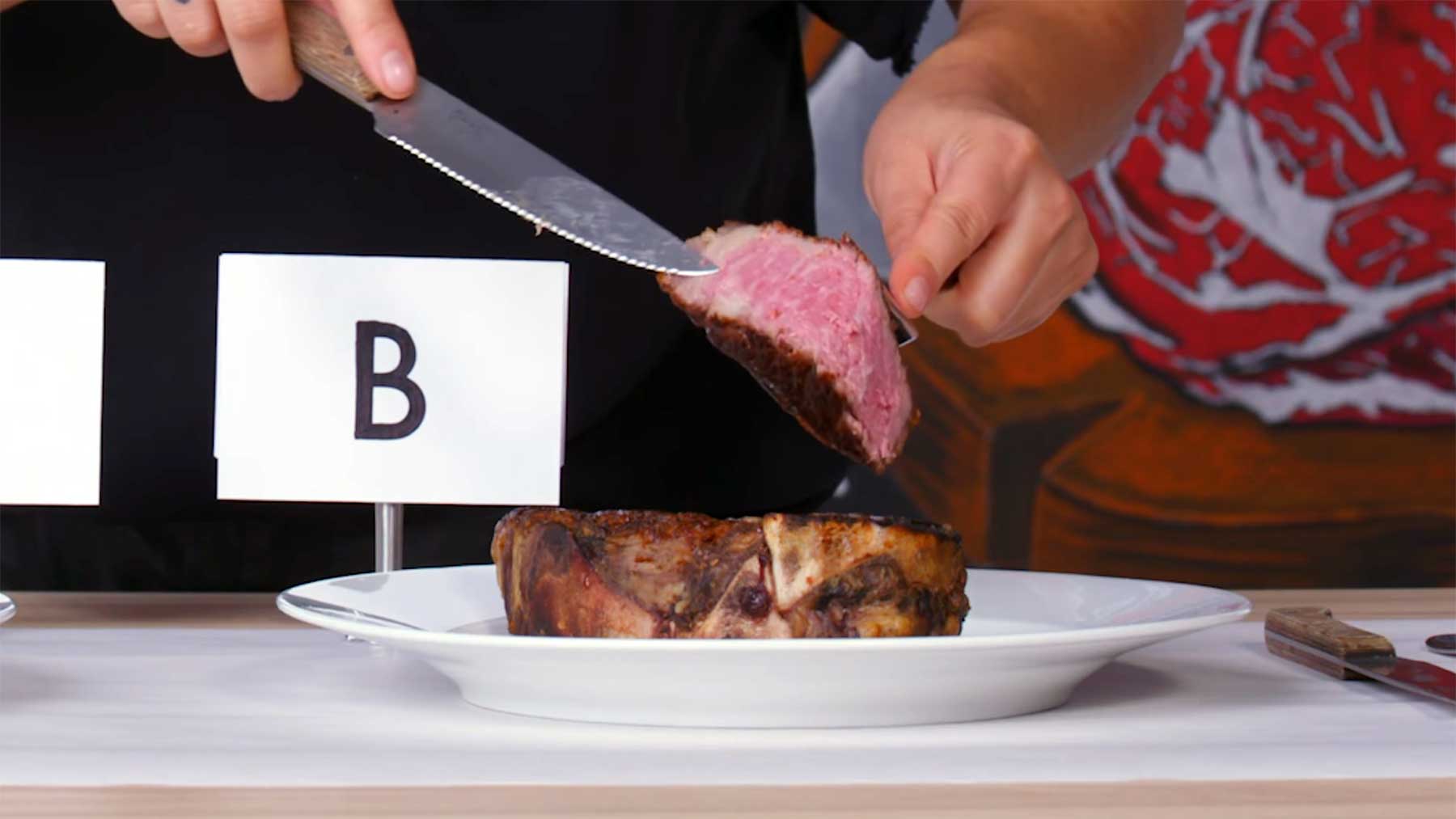 „In this episode of ‚Price Points,‘ Epicurious challenges steak expert Angie Mar (author, Butcher and Beast: Mastering the Art of Meat) to guess which one of two steaks is more expensive. Angie breaks down ribeye, strip and tomahawk steaks before making her guesses!“