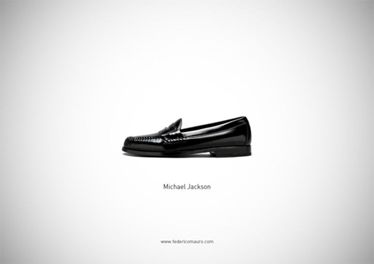 Sehr schöne Sammlung des italienischen Art Directors Federico Mauro. Der hat sich einige Ikonen der Popkulturgeschichte geschnappt und deren typisches Schuhweg in Szene gesetzt. Alles aus zusammengesuchten Google-Bildern erstellt, dafür aber wunderbar gleichförmig inszeniert.